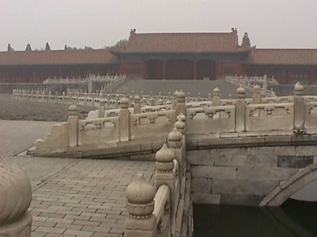 The River of Golden Water runs inside, again crossed by bridges. We had rented the audio tour (narrated by Roger Moore) so we didn't have to wait for a guide (our tour group had left the hotel just 30 minutes ago and were still driving to Tiananmen Square) |