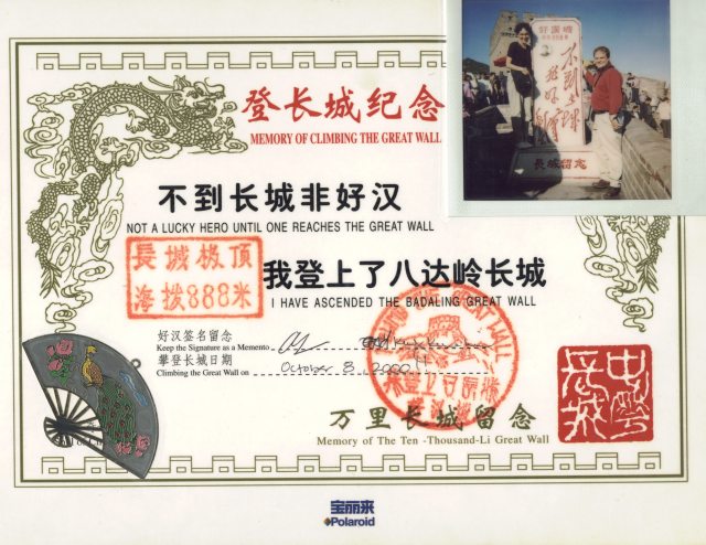Up at the top there was a kiosk where you could pay to have your picture taken with a pillar that had Mao's picture and the saying "You are not a hero until you have climbed the wall."