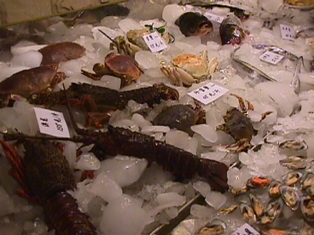 First stop back in Beijing was this really cool looking seafood resturant. We didn't get any seafood, only more Chinese food. Don't get me wrong, the chow was great. It was just kind of a let down to get sweet and sour chicken in a place where the crabs tried to crawl out of buckets and escape. |