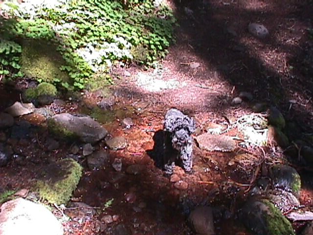 There is a small stream that leads way from the tiny lake, and Spot had no problem at all living up to his nickname of Wasser Schnauzer.