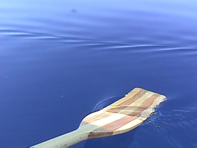 . . . to this crystal blue out near it's 426 feet deep center. Amazing. I had to stick the paddle in to give the camera something to focus on.