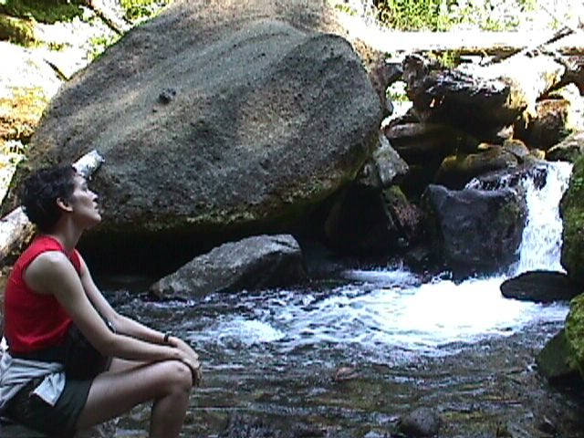 (Keely contemplates the falls) They made it to Salt Creek before they were forced to stop, nearly dead. Three men went on ahead for help. One became sick and was unable to continue. Another said "We won't let you die alone. We'll stay with you." The third guy said "Screw that" and made it to a farm, where boy tending sheep found him unconscious. |