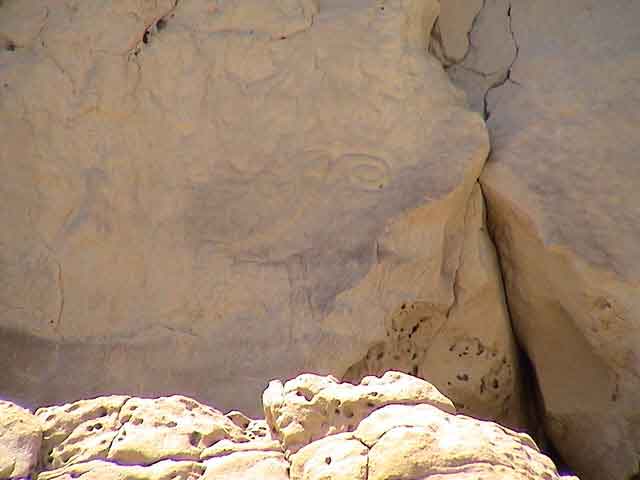 Just there in the center you can see a bird of some kind. The Chacoans traded with people in Meso America for macaws and other birds. Can you imagine humping 400 miles up from Mexico with parrots on your shoulder, hoping to find a buyer in Chaco? That was one heck of an is entrepreneur. |