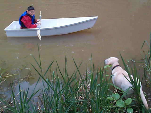 Shea, the family dog, was not quite as impressed. We had to take care to instruct Trace to stay away from the shoreline or Shea would try to get in the boat, and it just isn't designed as a dog hauler.