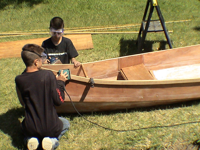 The next day was spent sanding. And sanding and sanding. And more sanding. Of course, we ended up not sanding it enough, so you can still see the seams.