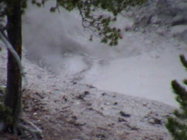 This was our first view of a real paint pot, but we didn't know it at the time. We were 40 yards away or so, uphill and through trees, but we still could tell it was impressive.