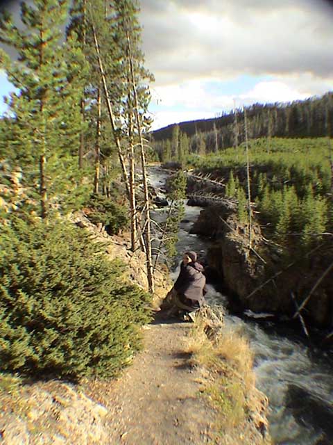 We went on Firehole Drive and made a stop to get out and take a picture of the tiny Firehole canyon. It was pretty, but when you climbed all over the gorges in central Oregon as a child, it is only so neat. Of course, it does have water in it where as the gorges of my youth did not (we couldn't afford to live in a place with water) |