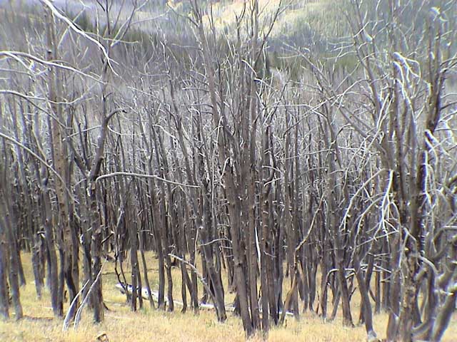 In 1988 they had a BIG fire, burned half the park - 1 million of the 2 million acres. Keely and I call these shots "puzzle pictures". Think Christmas eve, 1500 pieces. You know what we mean.