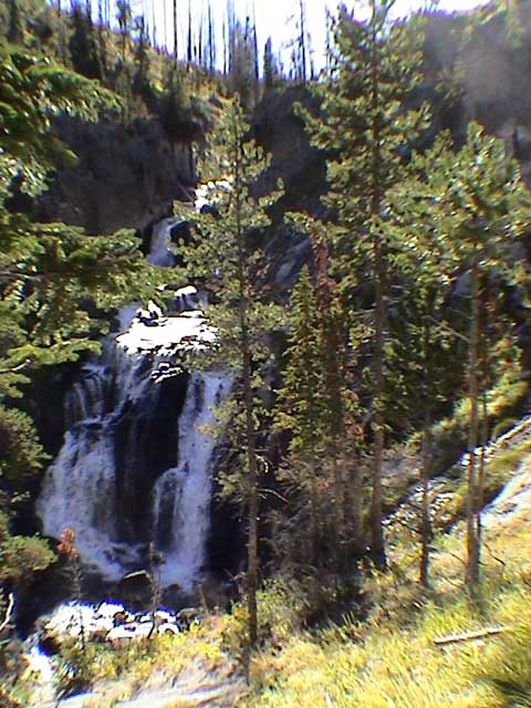 Mystic Falls from up on the canyon trail. See, the Mystic Falls trail is a big loop, and if you go around it clockwise, you have a very easy walk with one section where you up on a steep trail. If you go around counter clockwise, you have a very long but gradual up section, followed by a steep down section. |