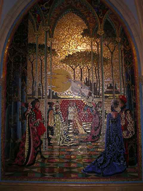 We were heading for our Breakfast with the Princesses in the castle. The passageway through the castle is adorned with these murals.