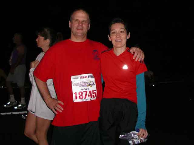Pre race shot. I am dressed in my standard running gear: my A Affordable Bail Bonds shirt and black shorts.