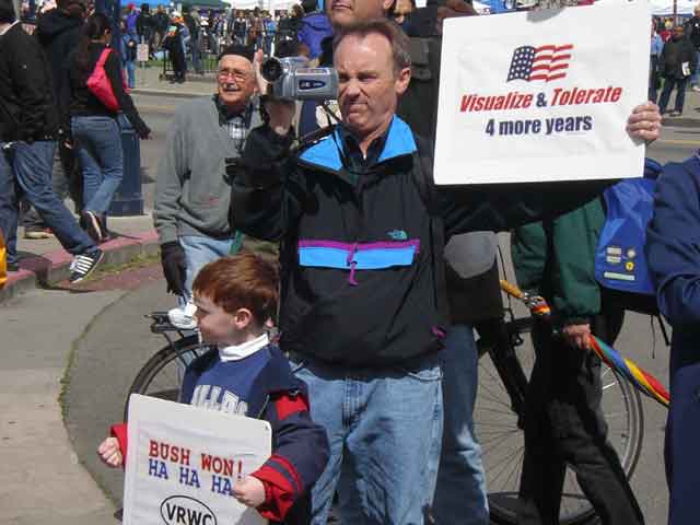 If those were peace protesters, I guess these guys are war protesters. The best part was the father was screaming at his kid 'Hold your sign up! No, UP! Dammit!'