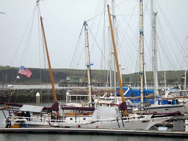 Half Moon Bay is a tad schizophrenic - they aren't sure if they want to be a quiet coastal working town or a tourist attraction. The harbor is split in half, with the right side full of a dizzying variety of sail and power boats (like this pirate-y type here) and the left half full of working craft - fishing boats and shrimpers. The town itself is quaint, but again, a mix of things like high end art galleries and a feed store. |
