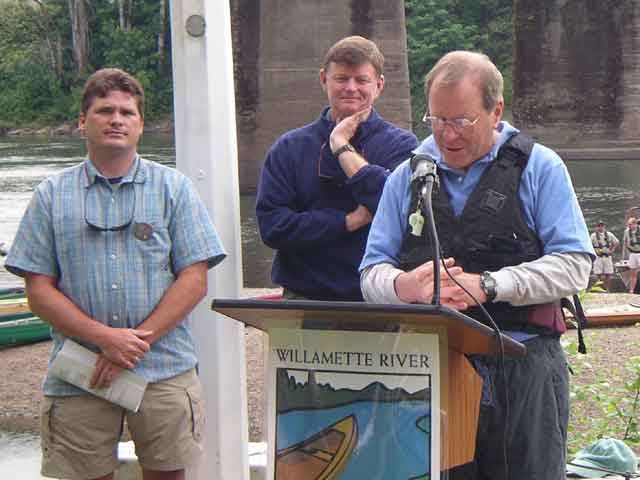 That's Travis on the left and governor Kulongoski on the right. I forget the name of the guy in the back.