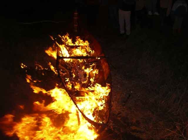 The boat bottom burned through, the gunnels, mast partner and keel were the last to go. As the flames died down it felt right.