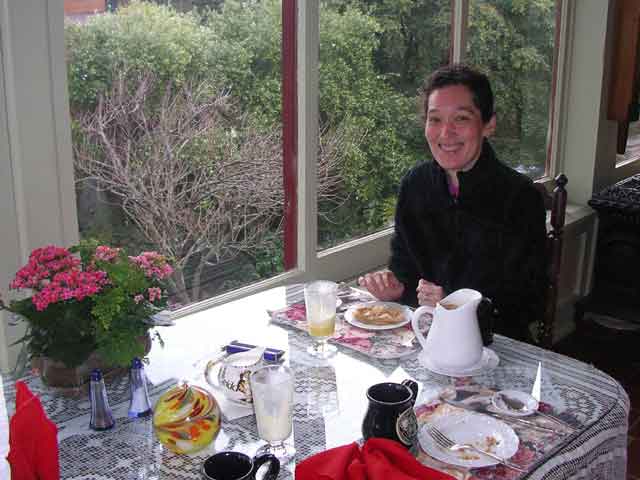 Breakfast was a treat - true gourmet dining at the Jabberwock. Pam and Larry joined us, and the owner fed them too.