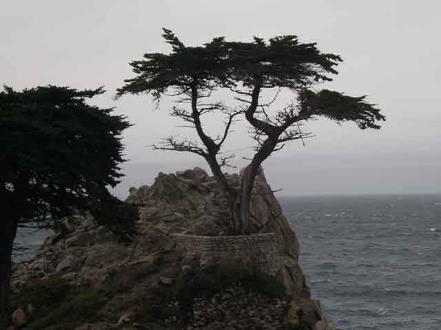 Lone Cypress - cypress trees live to about 300 years old, this one is supposed to be about 250. It is the logo of Pebble Beach and it is against copyright law to use the image for commercial gain. Too bad I don't charge for this site - I like to break stupid laws. |