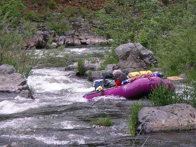 Our other guide, Lea, also ran the fish ladder flawlessly. They stand up and lean forward to tuck the oars back against the raft. Keeps 'em from being flailed to bits when they catch on the rocks.