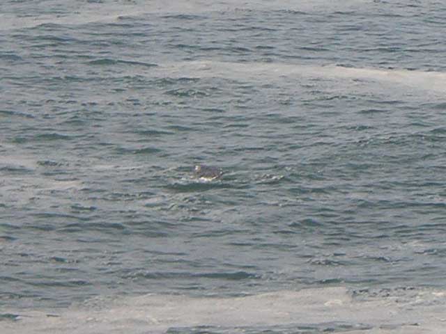 They tend to bob along, spouting every 30 seconds or so, for 3-5 breaths, then dive for 5 minutes or more - sometimes showing a bit of tail as they power down. Catching a photo of a tail with a digital camera is pretty tricky - I won't bore you with the 20 pictures I have of blank water. |