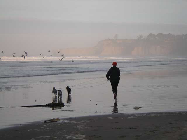 And, of course, we like to let the dogs pretend they are still wolves. Nothing better than a pack of wild schnauzers casing down some seagulls in the early morning light.