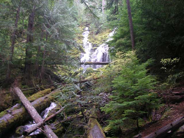 Proxy Falls as one truly unique feature: The upper falls flow from way up there into a pool down at the bottom (where I am standing to take this shot) and then that pool drains away underground - just like a garden fountain. Pretty cool.