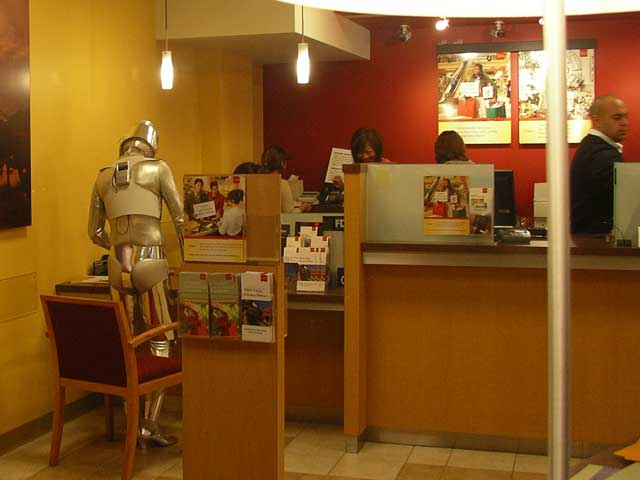 That evening as we returned to the hotel, I glanced into a bank and saw this street performer stashing his cash. Robotic Banking at its finest.