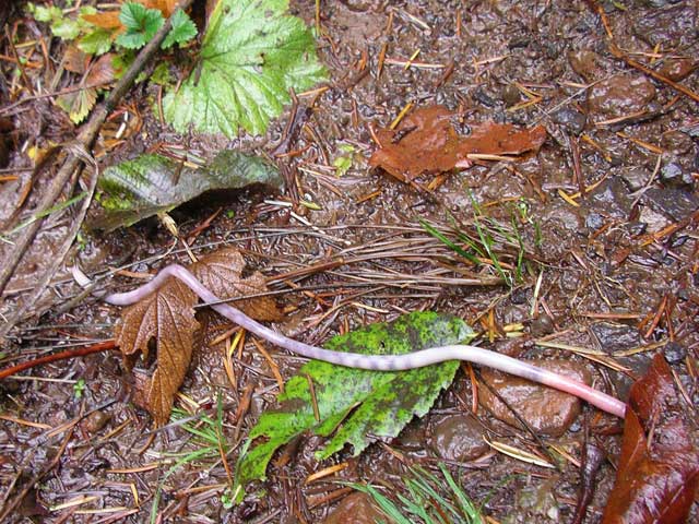I spotted this cool, translucent worm struggling to get across the path. We