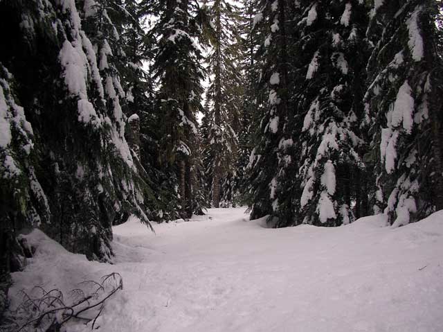The trails are fairly well marked and mapped out - there are blue, plastic diamonds nailed about 15ft up in the trees. However, if you stray left or right by a tree or so, you ain't gonna see no blue diamonds. And there are a lot of breaks in the trees that look like paths. |