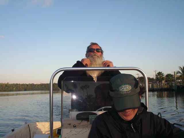 David has a 23ft long, 8ft wide skiff (looks like a Puddle Duck Racer with hormone problems from the side) powered by a 150hp outboard. He has been guiding in the Everglades for 28 years and he loves his job.
