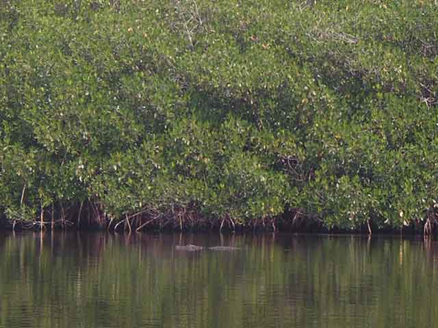 When we paddled out of the mangroves, we were in a large bay and we could see 5 alligators in the water, so we named it Five Gator Bay.
