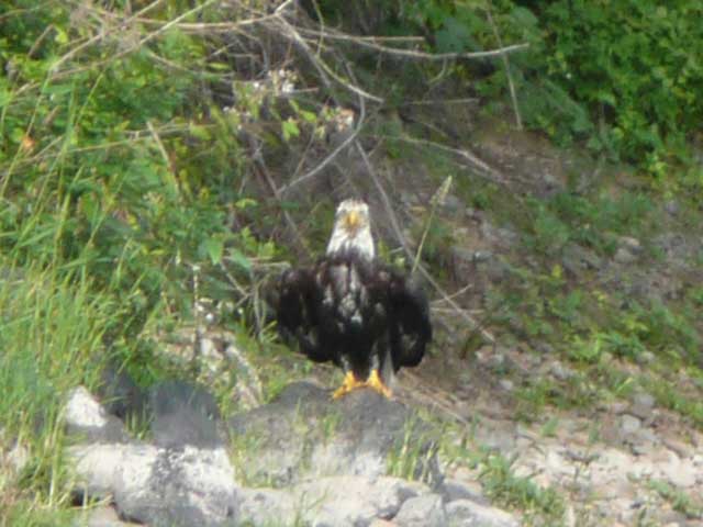 We couldn't tell if the eagle had something or if the osprey was just attacking it in a turf battle. Just seconds after this shot, the eagle took off and flew away.