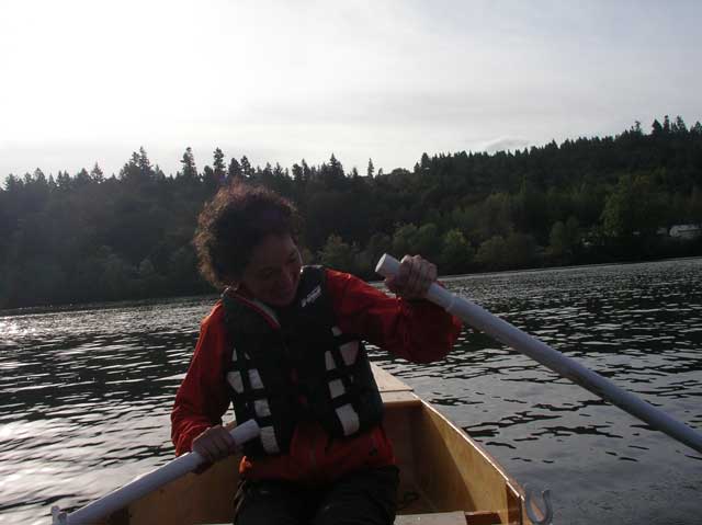 Rowing is not paddling - it takes a bit more practice. Double rowing takes even more practice. We looked like a spastic caterpillar lots of the time, but we eventually got pretty good. One thing I need to do is shorten the oars from 6ft to maybe 5ft. The plans called for 6ft oars, and they are just too long. |