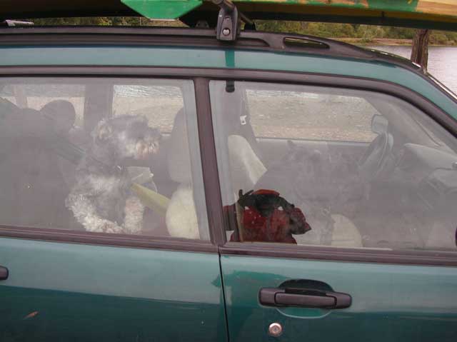 We took the dogs, too. They wanted to help, but it is not a good idea to toss a bunch of schnauzers into an untried boat.