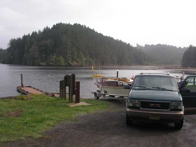 Back at the boat launch, I found Bob L putting his 25ft Birdwatcher II in. Damn, that is a fine boat. Its designer was Phil Bolger, the same guy who designed my Junebug, and you can see the family resemblance ('Bolger only did one sharpie sailboat design.' Bob said.) |
