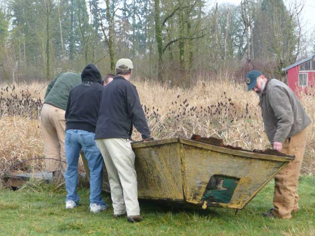 Moving it to the burn pile was problematic - the boat was so rotten, every time we grabbed a piece of it, that piece would break off in our hands.