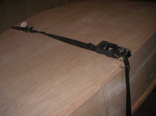 I flipped her over and saw the side was deformed where the chine had cracked. I attached a winching tie strap at the crack and tightened it until the side came back into shape. (mostly) I then attached the bottom to the chines.