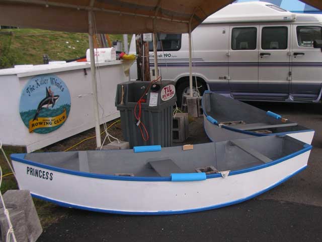 Earlier, I had made three rowboats for the Neighbors for Kids program to paint and sell at auction. The kids did a pretty good job and we held 3 different auctions throughout the boat show. The first boat sold for $80, the next boat sold for $140, and the last boat sold for $135. Not too shabby. |