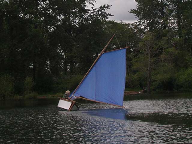 She has a self-tending jib, and when the wind caught her hard, Pat let the main all the way out to bleed off the wind pressure, but the jib was still drawing and he came awfully close to going over. Dragging the boom in the water is never a good thing. |