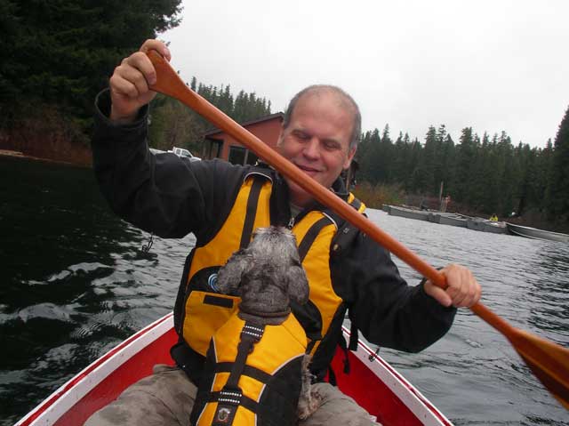 Everybody in my boat wears a lifejacket. Not that it will help you that much at Clear Lake - the lake is fed by a spring that dumps water into the lake at a constant 33°F. As a result, there is very little life in the lake, so it stays pretty clear. The water is some of the purest in the world. |