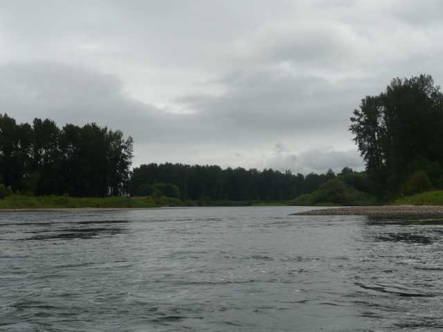 This unimpressive picture is of the confluence of the Santiam and Willamette rivers. We had about 2 miles to go to the take-out.