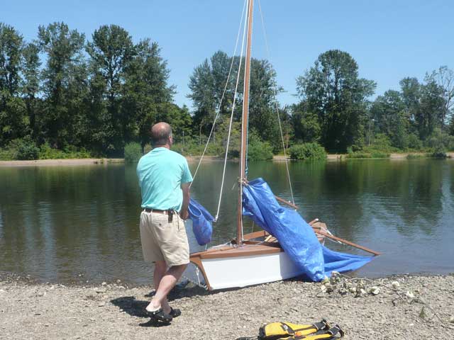 I ran her up on the beach and dropped the sails. While I prepped the boat for getting back on the trailer, I incurred the wrath of some crazy people camping (illegally) next to me. A young woman had gotten into a canoe and I asked if she had a life jacket. Her mother (wicked step-mother? owner?) started telling me how she was a professional canoe instructor and that everything was safe. Then she went all crazy, jabbering about drug dealers and all kinds of crap. Man, I love Salem. |