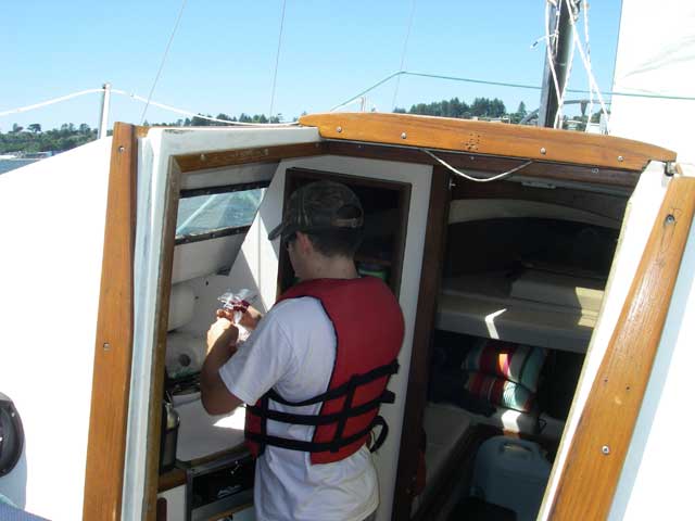 As it was after lunchtime, Dustin went below to make sammiches. None of my boats have a 'below.'
