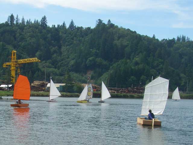 My finely constructed craft, combined with my masterful seamanship, had allowed me to pull into the lead and round the far buoy first. My choice of Chinese Lug for the sail was proving its value: I knew the shape was causing confusion among the Western minds of my competitors and the sail was doing an excellent job of grabbing the wind. |