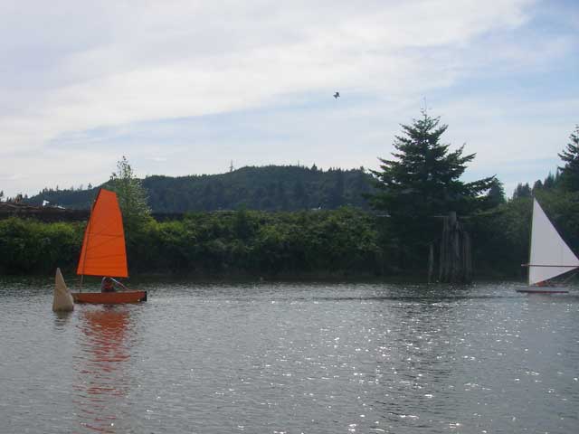 I exited the wind shadow and my larger sail allowed me to widen the lead a bit. I crossed the finish line at 12 minutes 24 seconds. Jon was 12min 42sec.