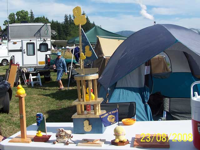 This is the trophy pile. The awards ceremony was delayed a bit as I went off to look for David G. I found him in the beer garden (of course, why didn't I look there first?) and we got started handing out trophies.