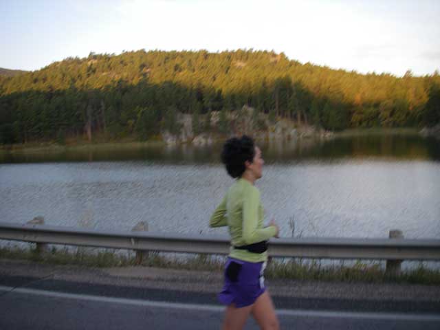 Keely running in front of Horsethief Lake. All the lakes in the area are man-made. You may notice Keely wears a running skirt - she is part of the newest fashion revolution in the running world. She takes great pride in it.