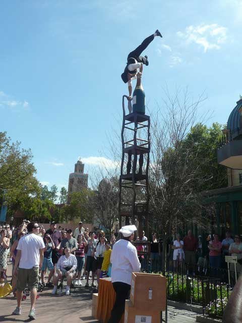 The really cool thing about Disney is that they keep things happening in the park - it isn't all just the rides and shops. This acrobat was just one of the diversions.