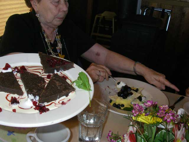 Keely got Chocolate Squares with Jellied Huckleberries and Mom got the Blueberry Puff Pastry. And this was after a damn fine meal.