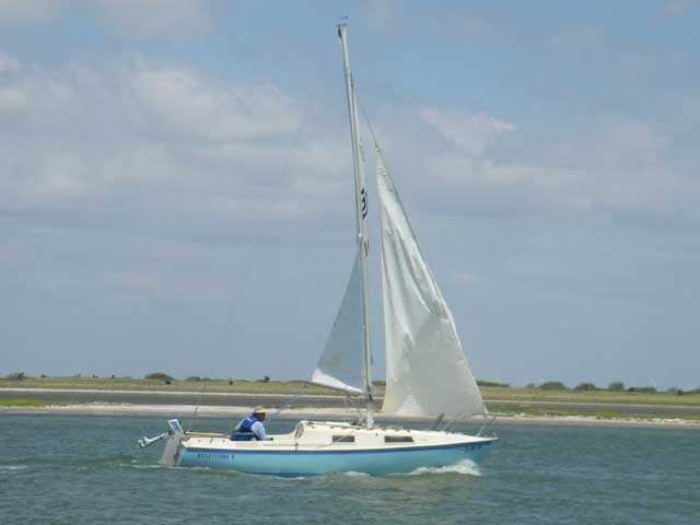 This is Bobby Chelik in his San Juan 21 - Bobby is traveling with his daughter, Kristina. You might remember Bobby as the guy who towed me into the Padre Island Yacht Club last year.