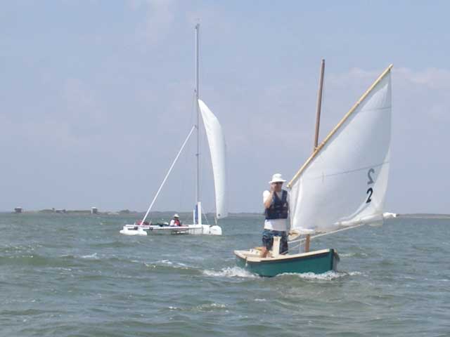 Kevin being passed by Laurent. Laurent's proa suffered a couple of problems and he removed it from the TX200 at the end of the day.